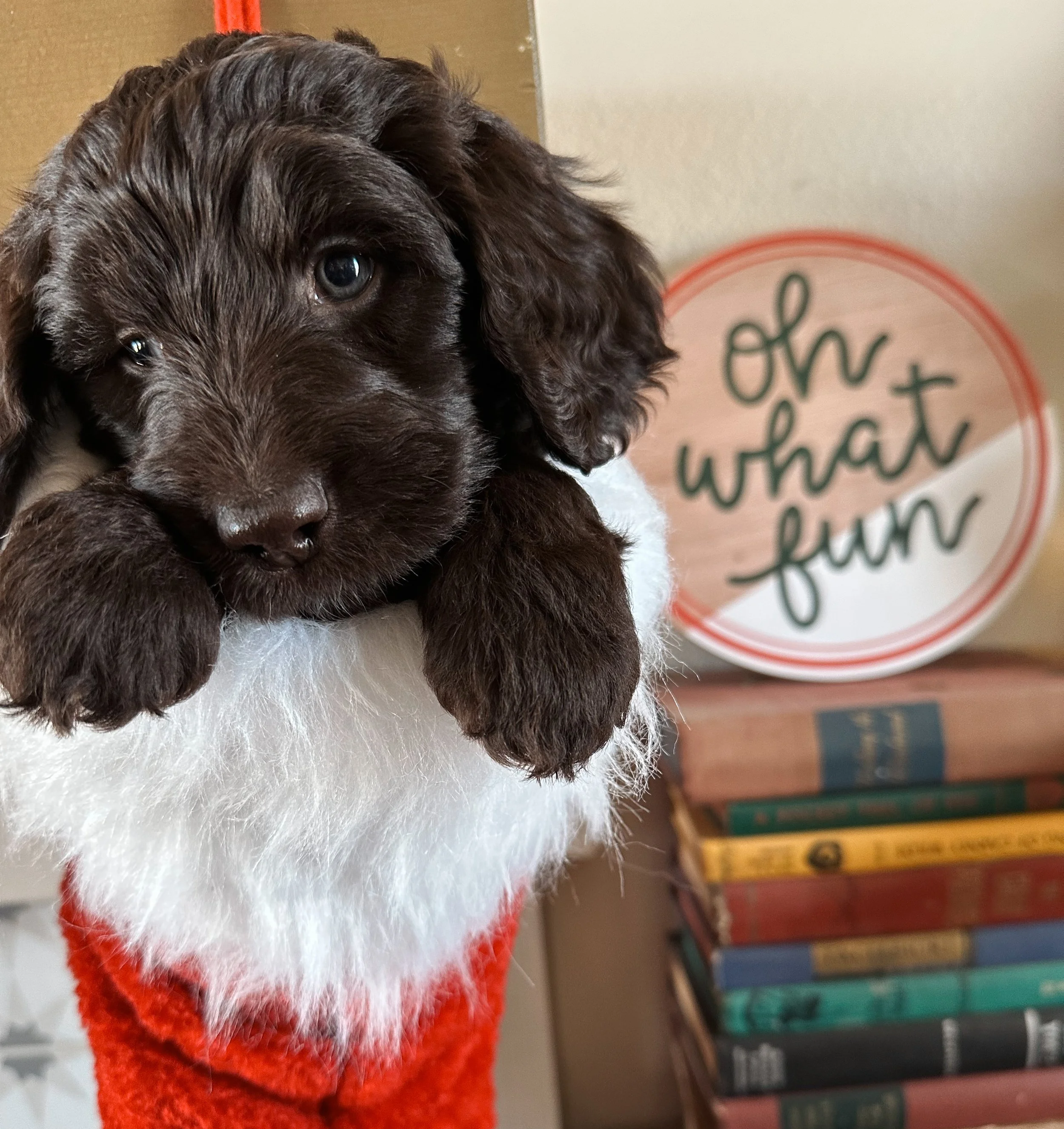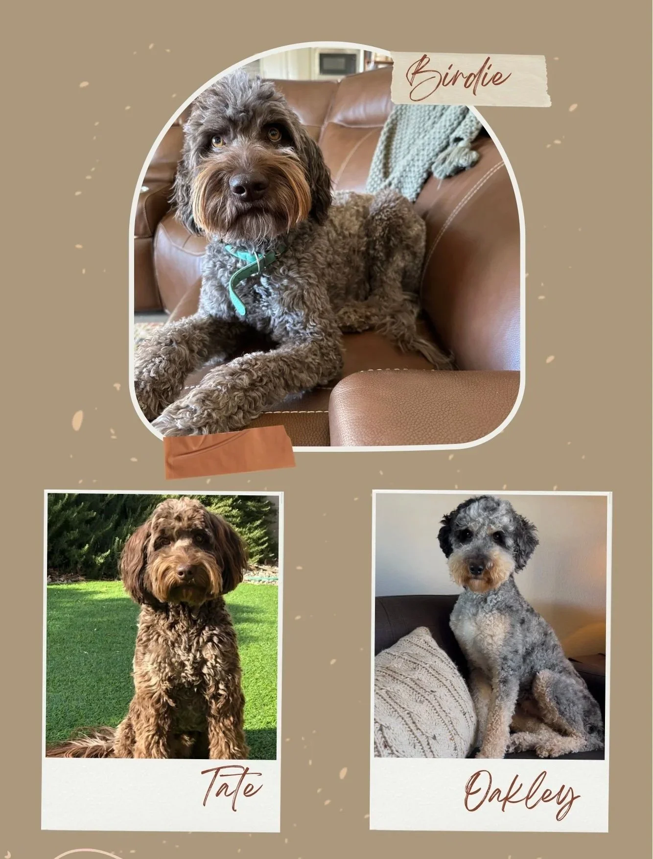 Any pups from Tate will be primarily brown/chocolate while Oakley will be the dad of any other colors/patterns.